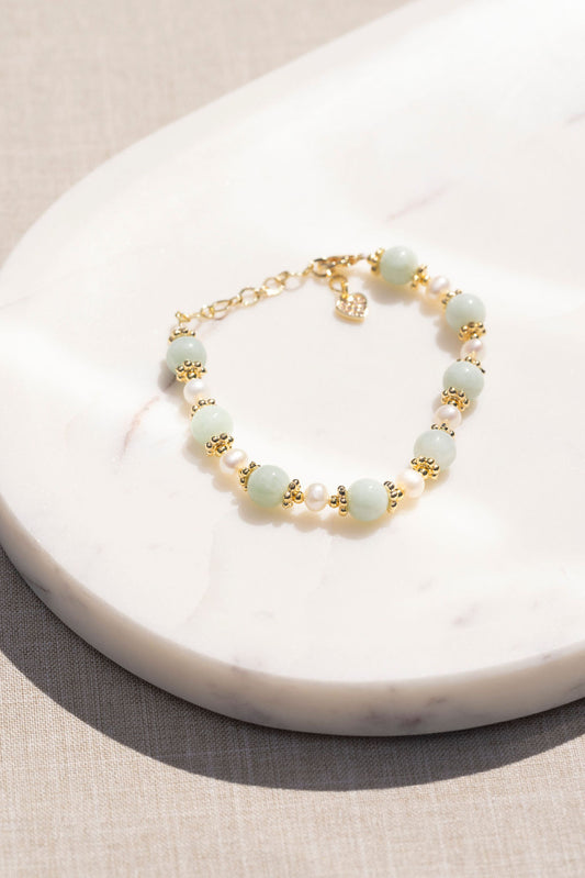 Shop Luna Luxe Jewelry minimalist bracelets crafted with freshwater pearls, natural jade, and other natural stones in gold-filled and gold-plated designs.