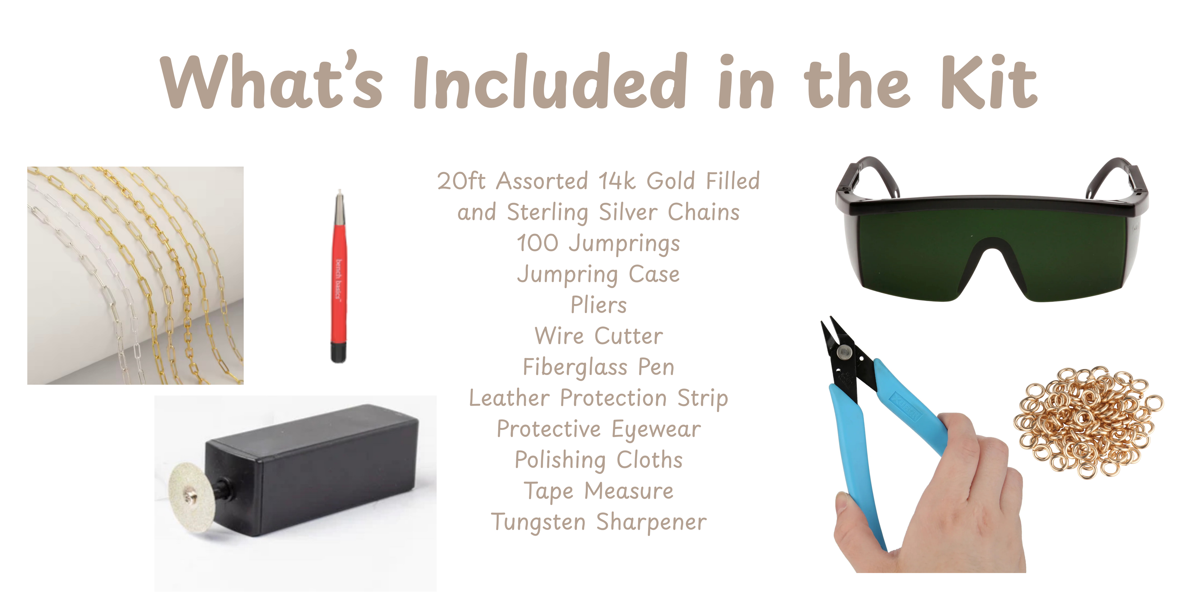 You’ll learn about gold-filled and sterling silver materials, including how to choose the right chains and jump rings for permanent jewelry.