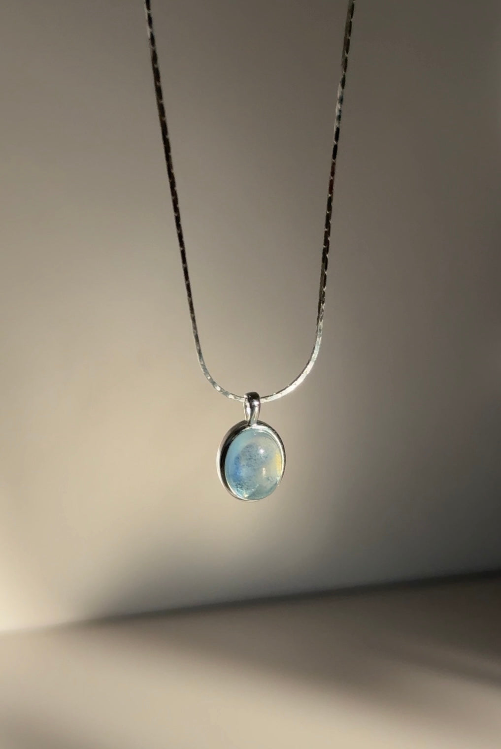 Soft, serene, and effortlessly elegant — the Aqua Sky Necklace captures the calming beauty of clear skies and open waters. At its center is a natural oval aquamarine gemstone, bezel-set for a modern yet timeless look. The delicate platinum-plated sterling silver chain adds a cool-toned, luminous finish, making this piece perfect for everyday wear or special moments.