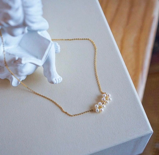 The Clara Bloom Necklace radiates delicate charm and natural beauty. Featuring a dainty gold-filled chain, this necklace is adorned with two freshwater pearl daisy flowers, crafted side by side to symbolize growth, joy, and connection. The luminous pearls add a timeless elegance, while the gold-filled chain ensures durability, making it perfect for everyday wear or special occasions.