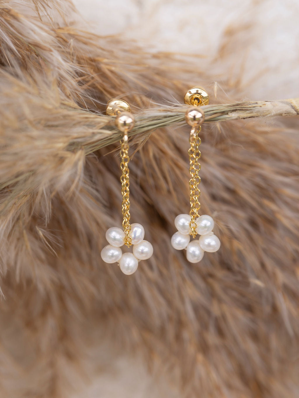 Delicate and charming, our Daisy Bloom Pearl Earrings feature a simple yet elegant daisy flower design that dangles gracefully. Crafted with lustrous freshwater pearls and plated in 18k gold, these earrings are a perfect blend of nature-inspired beauty and timeless sophistication.