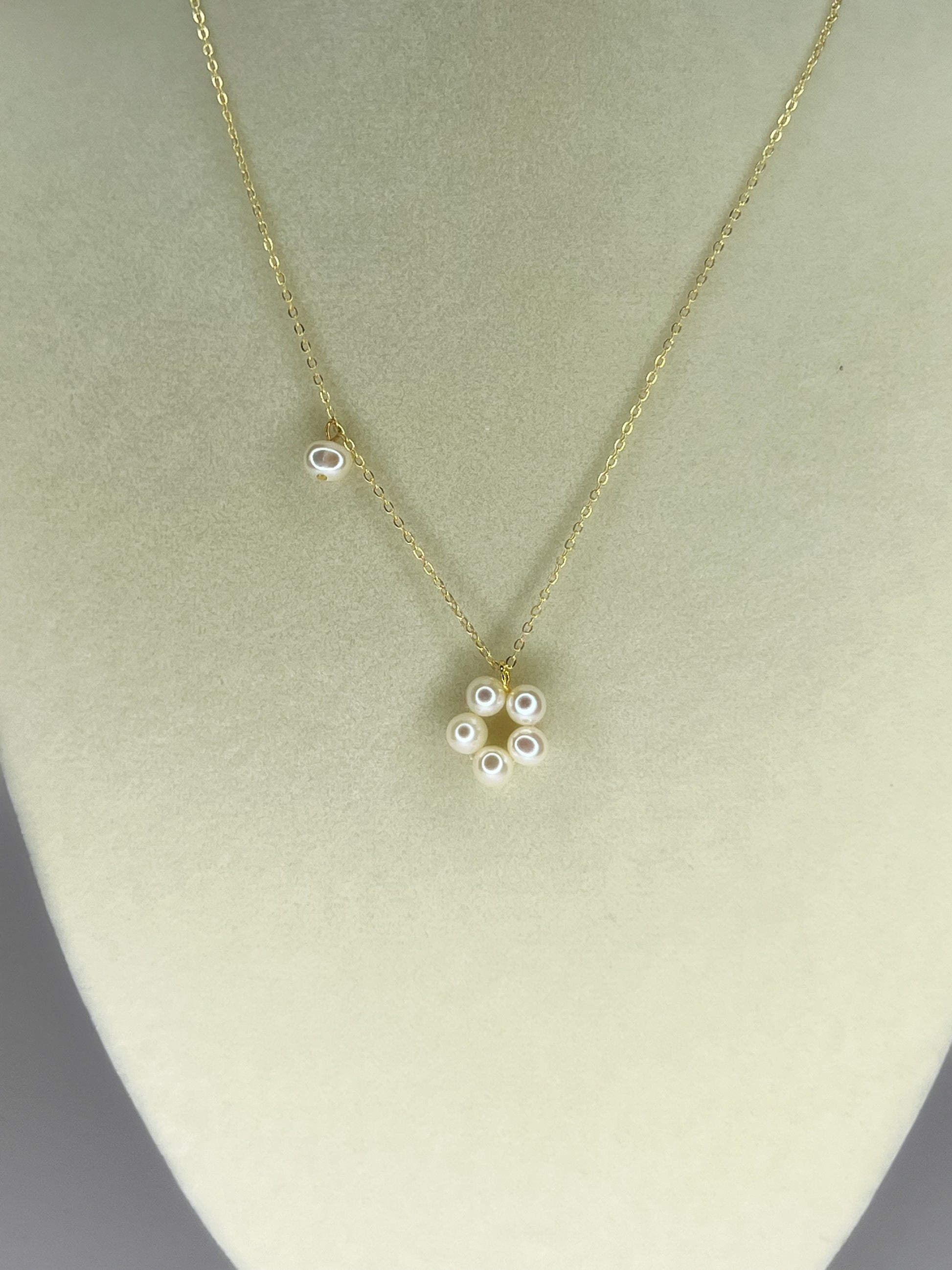 Daisy Charm Necklace – Gold Plated with Freshwater Pearls
