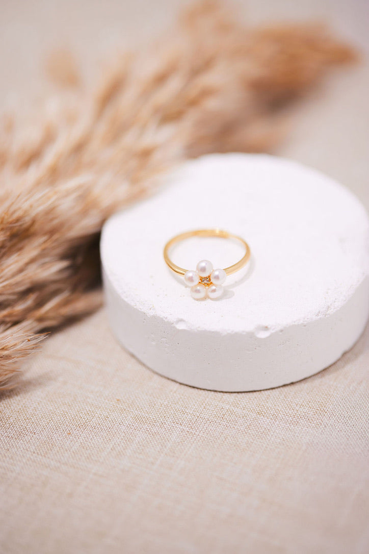 Daisy Sparkle Ring is a radiant piece from our gold vermeil collection, blending nature's charm with timeless elegance. The centerpiece of the ring is a delicate daisy crafted from lustrous freshwater pearls, with a brilliant CZ diamond sparkling at the flower's heart. This gold-plated beauty features a sterling silver base, offering both durability and luxury. The adjustable design ensures a comfortable fit for all, making it perfect for both daily wear and special occasions. With its enchanting floral detail and versatile size, the Daisy Sparkle Ring exudes sophistication and whimsy in one stunning design.