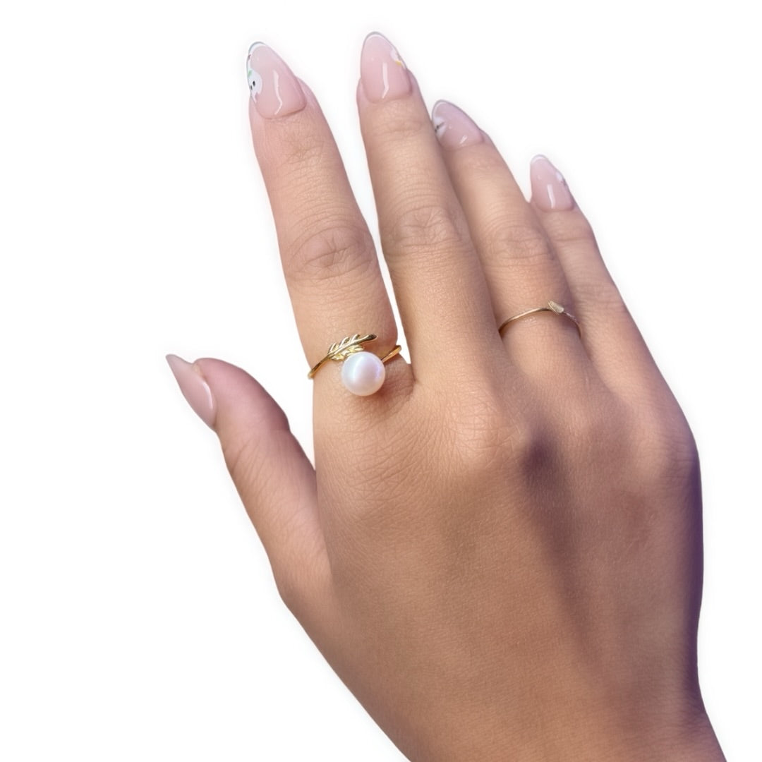 Discover elegance in nature with the Eden Ring. This adjustable ring features a lustrous freshwater pearl balanced by a delicate gold-plated leaf, crafted to capture natural harmony.