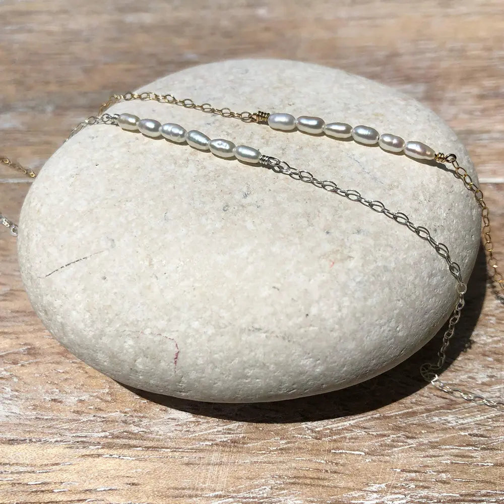 Embrace effortless elegance with our LunaLuxe Freshwater Pearl Anklet, designed for those who adore timeless sophistication. Featuring lustrous freshwater pearls delicately set on a sterling silver or gold-plated chain, this anklet adds a touch of luxury to any outfit. The 8.5-inch chain is adjustable with a 1.5-inch extender, ensuring a perfect fit for every ankle.
