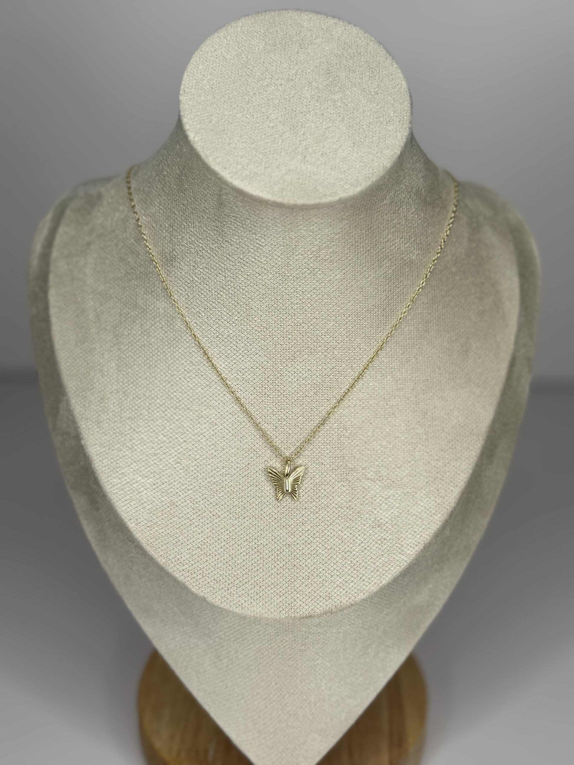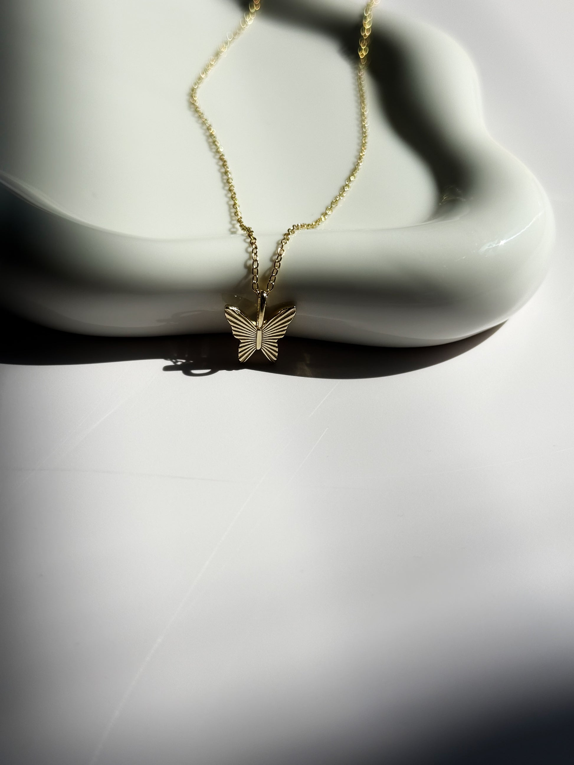 Delicate and graceful, the Radiant Butterfly necklace embodies a sense of lightness and elegance. Featuring a dainty butterfly pendant crafted from gold vermeil over a sterling silver base, this piece adds a subtle yet captivating charm to any outfit. Whether layered or worn alone, the Golden Butterfly is perfect for those who appreciate a touch of nature-inspired beauty in their jewelry collection.