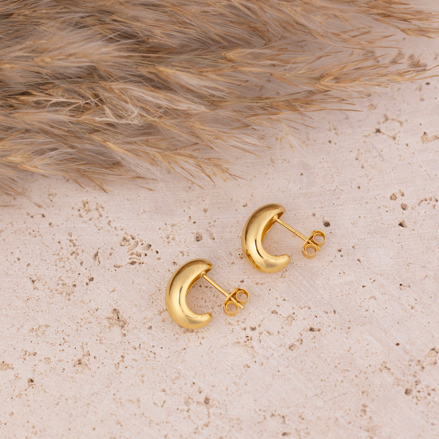 Elevate your style with the subtle elegance of our Honeh Curve Earrings. These gold vermeil huggie-style earrings are uniquely crafted with a curved bean-like shape that gently hugs the earlobe, offering a sleek, modern aesthetic. Their refined design brings a touch of understated luxury, perfect for both everyday wear and special occasions.