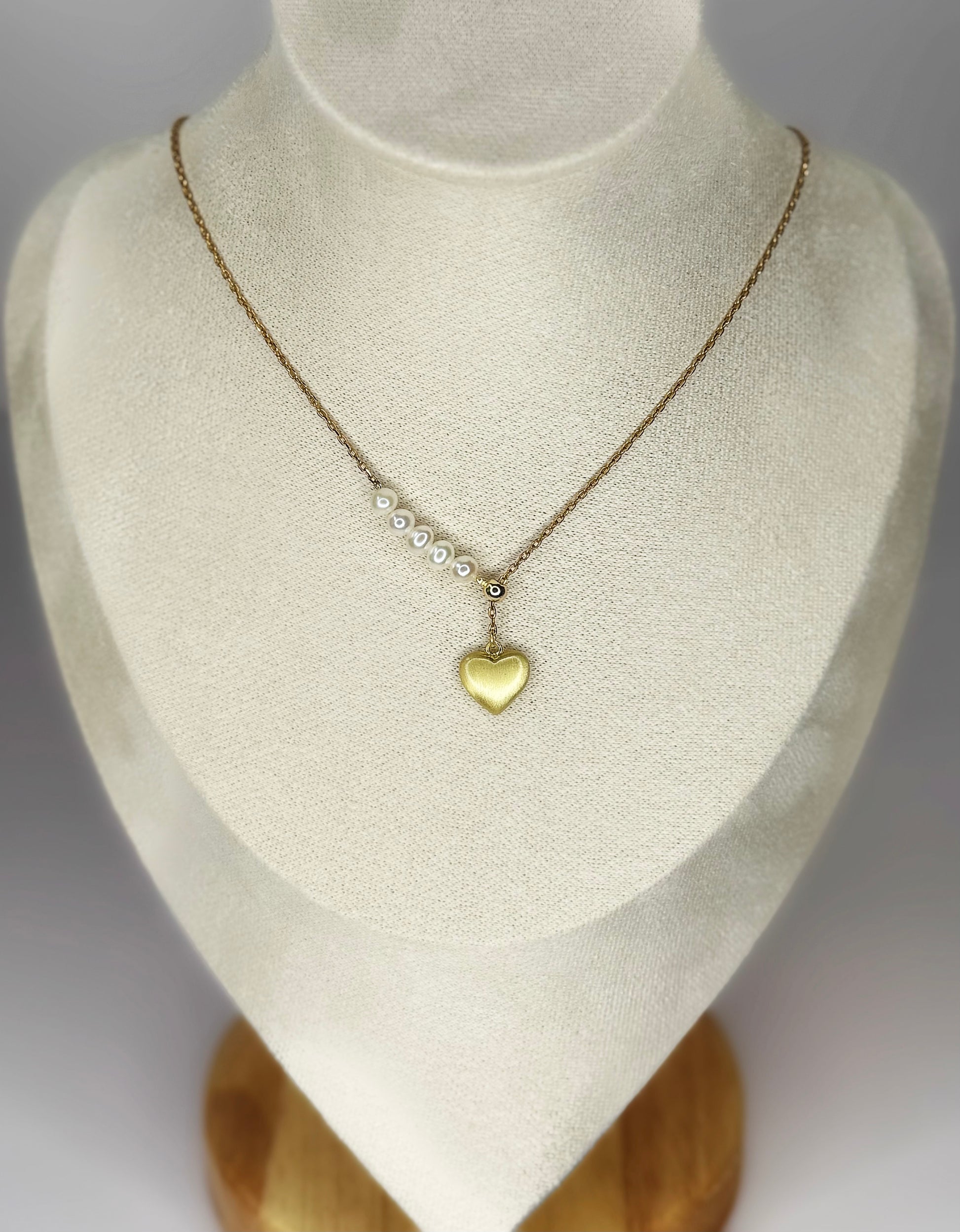 The Heartstrings necklace beautifully combines romance and elegance. Featuring a gold heart pendant that's adjustable in height, this unique design is accented by delicate freshwater pearls draped along one side of the chain, adding a touch of charm and sophistication. A perfect piece for wearing close to your heart.