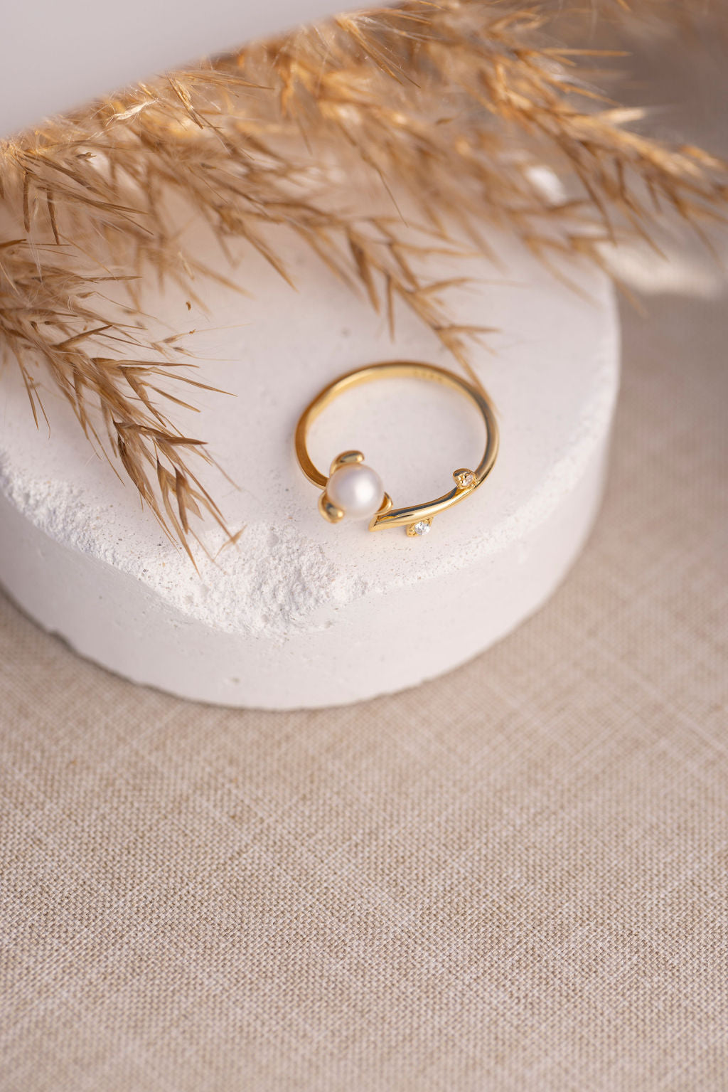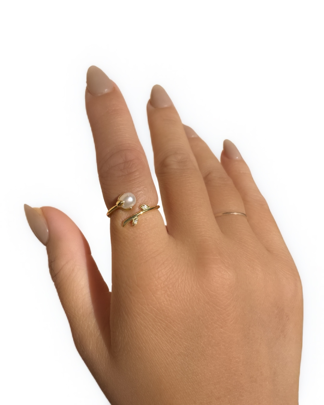 Embrace the elegance of nature with the Ivy Pearl Ring, a stunning addition to your jewelry collection. This adjustable ring features a luminous pearl centerpiece that exudes sophistication, elegantly cradled by a delicate vine design.
