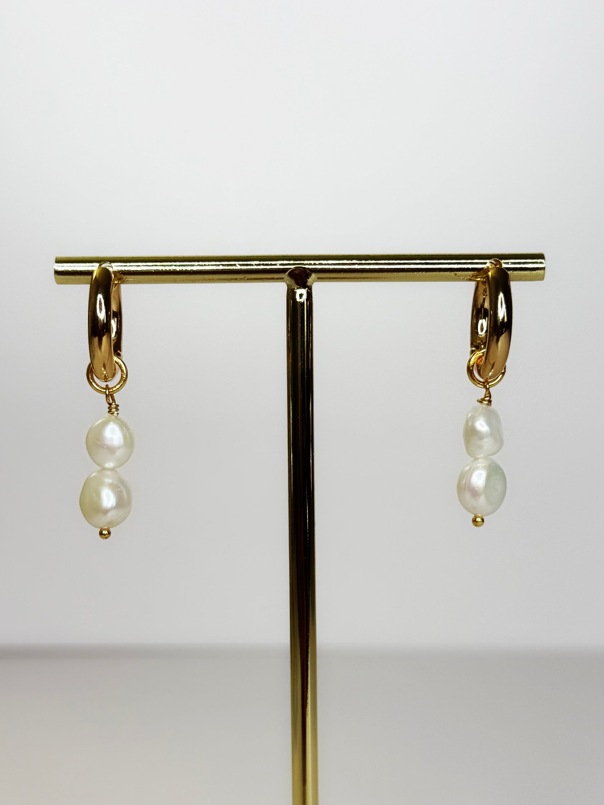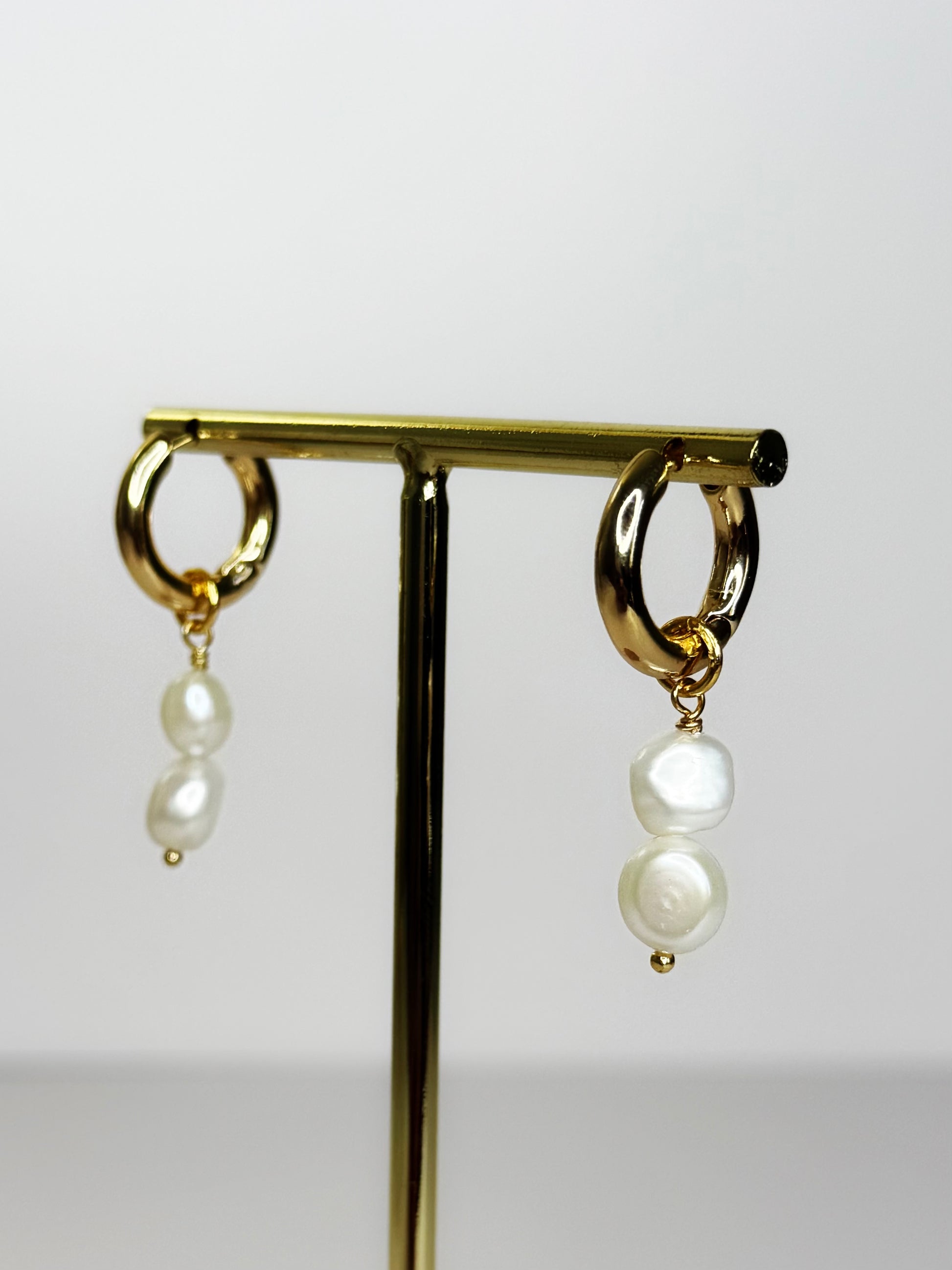 Effortlessly bold, the Kaia Hoops bring together modern edge and timeless elegance. Featuring thick, gold-plated hoops paired with two organically shaped baroque freshwater pearls, these earrings are designed to stand out. Whether you're dressing up a casual look or adding a statement to evening wear, Kaia is your go-to for elevated minimalism.