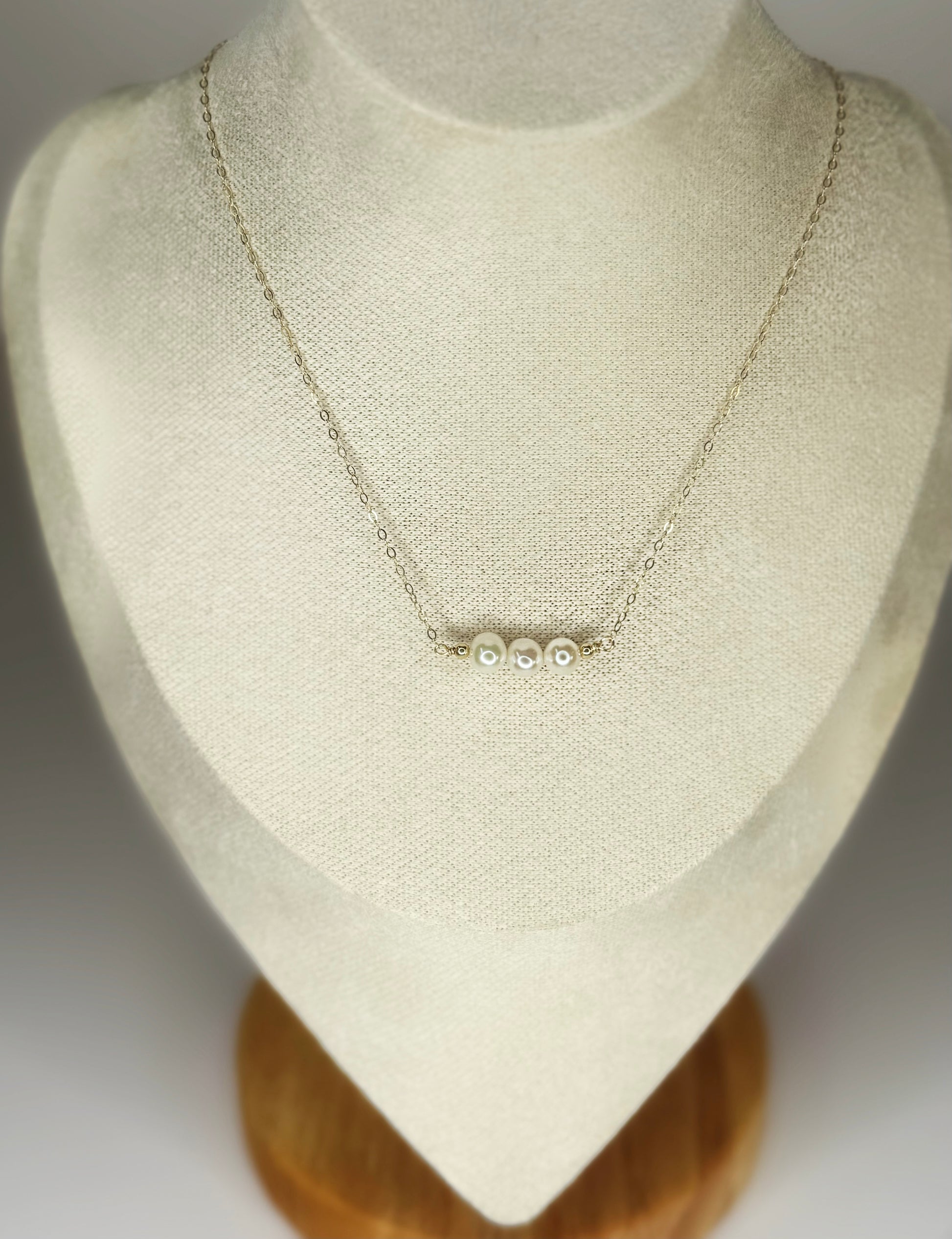The Lena Pearl Necklace exudes timeless elegance with its minimalist yet striking design. Featuring three natural freshwater pearls, each delicately arranged side by side, the pendant gracefully rests on a simple gold-filled chain. The smooth pearls capture light, creating a subtle yet captivating glow. This versatile piece is perfect for adding a touch of sophistication to any outfit, whether worn casually or for more formal occasions.