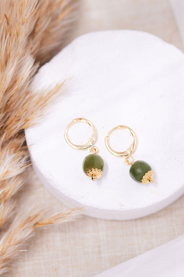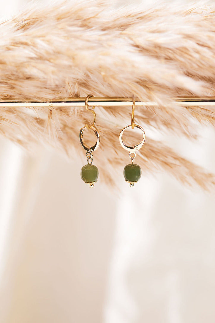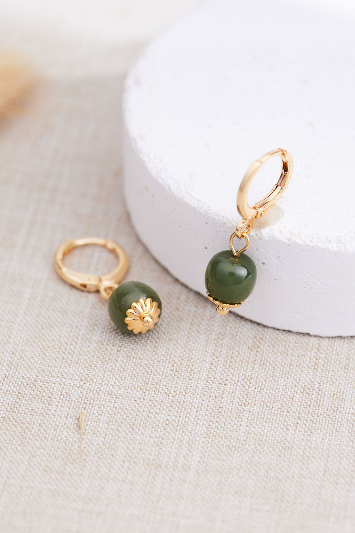 The Lila Jade Earrings offer a harmonious blend of timeless elegance and natural beauty. These earrings feature smooth, golden hoops adorned with a delicate natural jade ball that dangles gracefully, adding a subtle yet striking touch to any look. The soft green hue of the jade complements the warm glow of gold, creating a versatile design perfect for both everyday wear and special occasions. The Lila Jade Hoops are a symbol of balance and serenity, making them a meaningful addition to your jewelry collection.