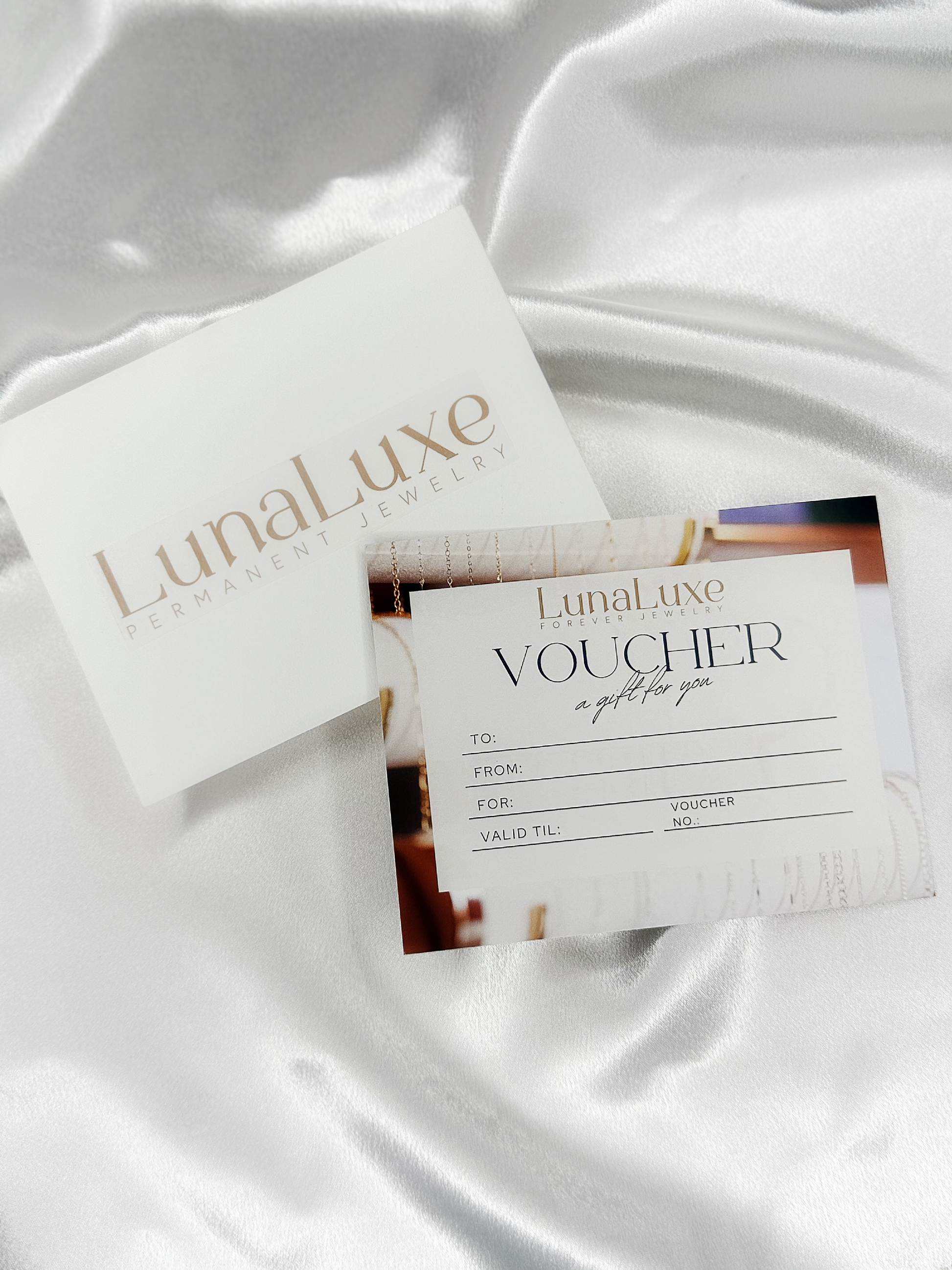 Give the gift of timeless elegance and memories with LunaLuxe Gift Certificates. Available in flexible denominations, these certificates are perfect for loved ones who cherish unique jewelry experiences.