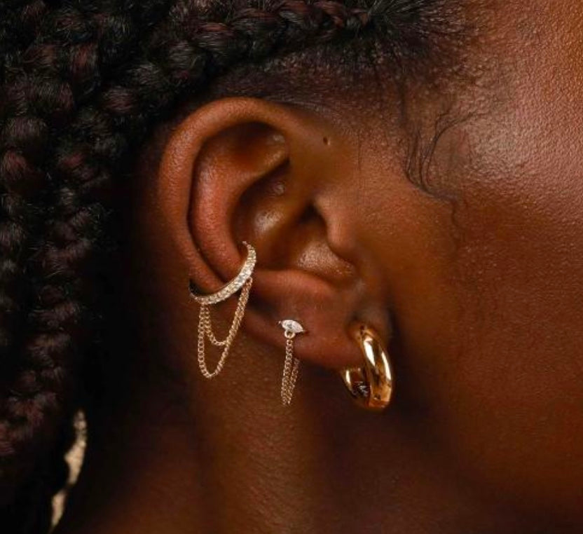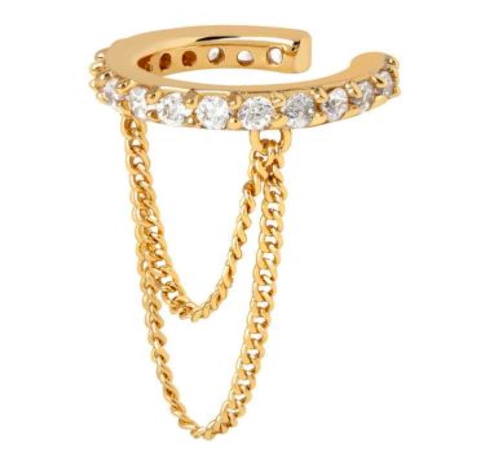 Each cuff is adorned with sparkling natural zircon stones, adding a touch of brilliance, while a delicate chain dangles gracefully for an edgy, contemporary flair. Whether you're dressing up for a night out or adding a statement piece to your everyday look, the Nova Ear Cuffs are your go-to accessory for modern glamour.