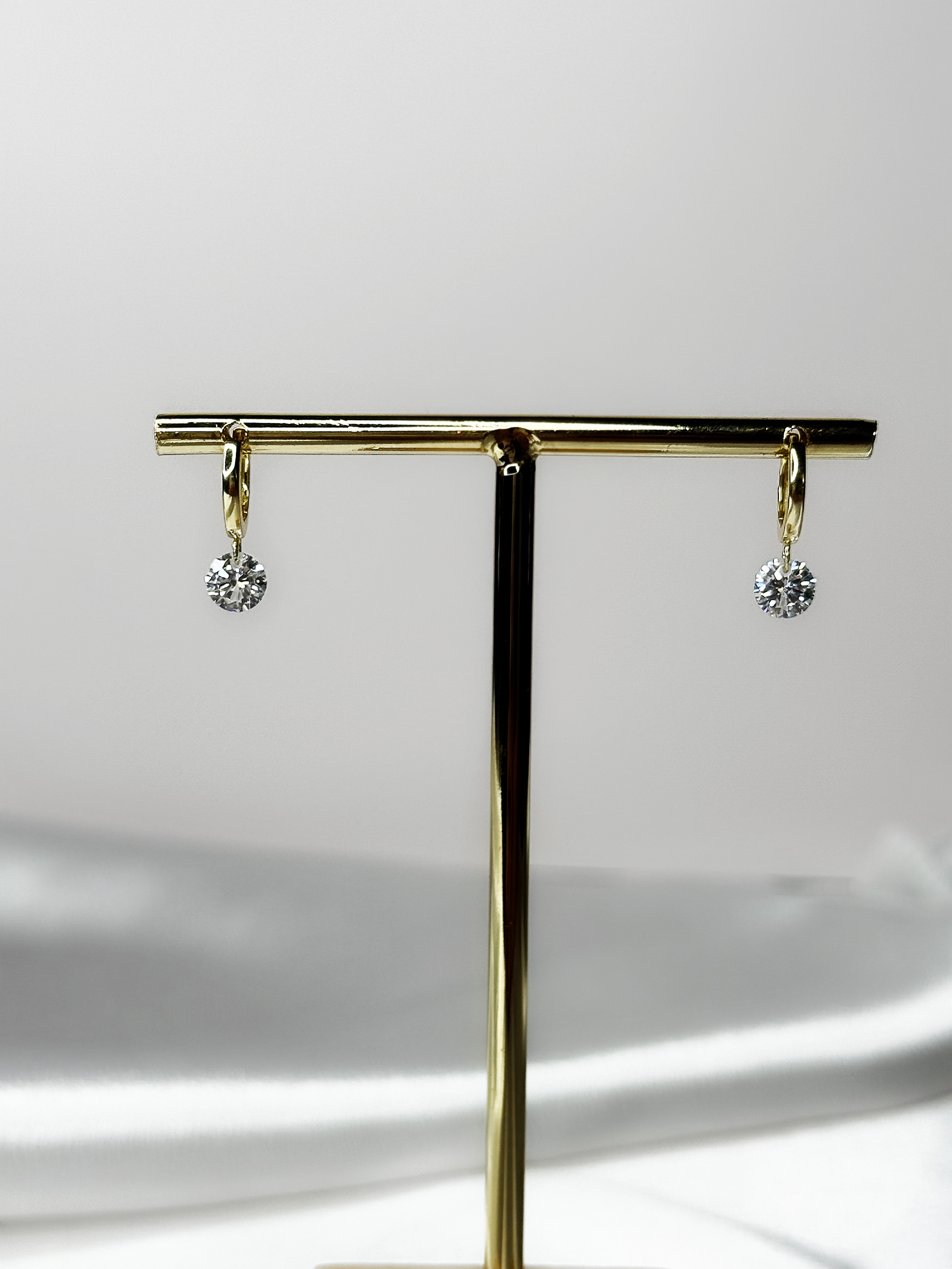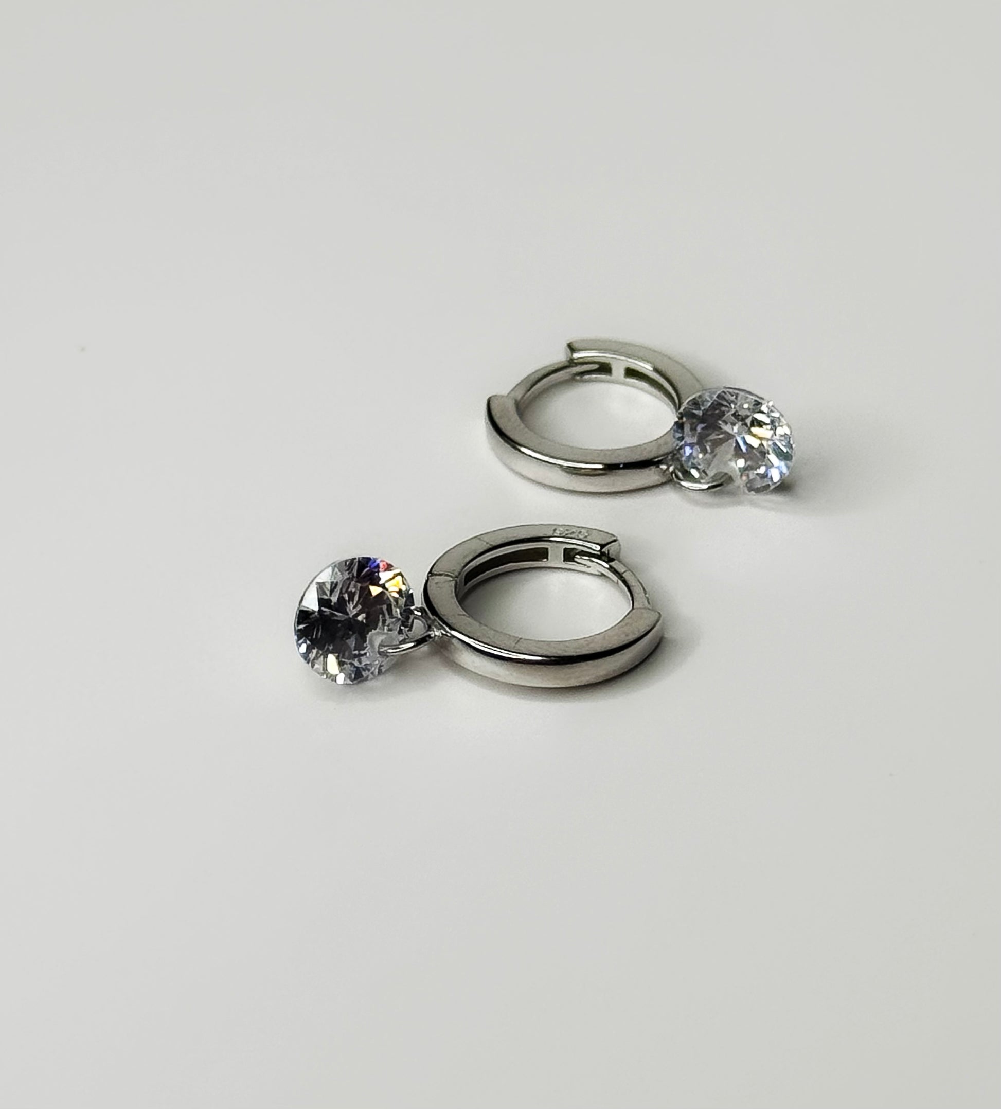 - Design: Mini hoop with a solitaire-style dangling zircon