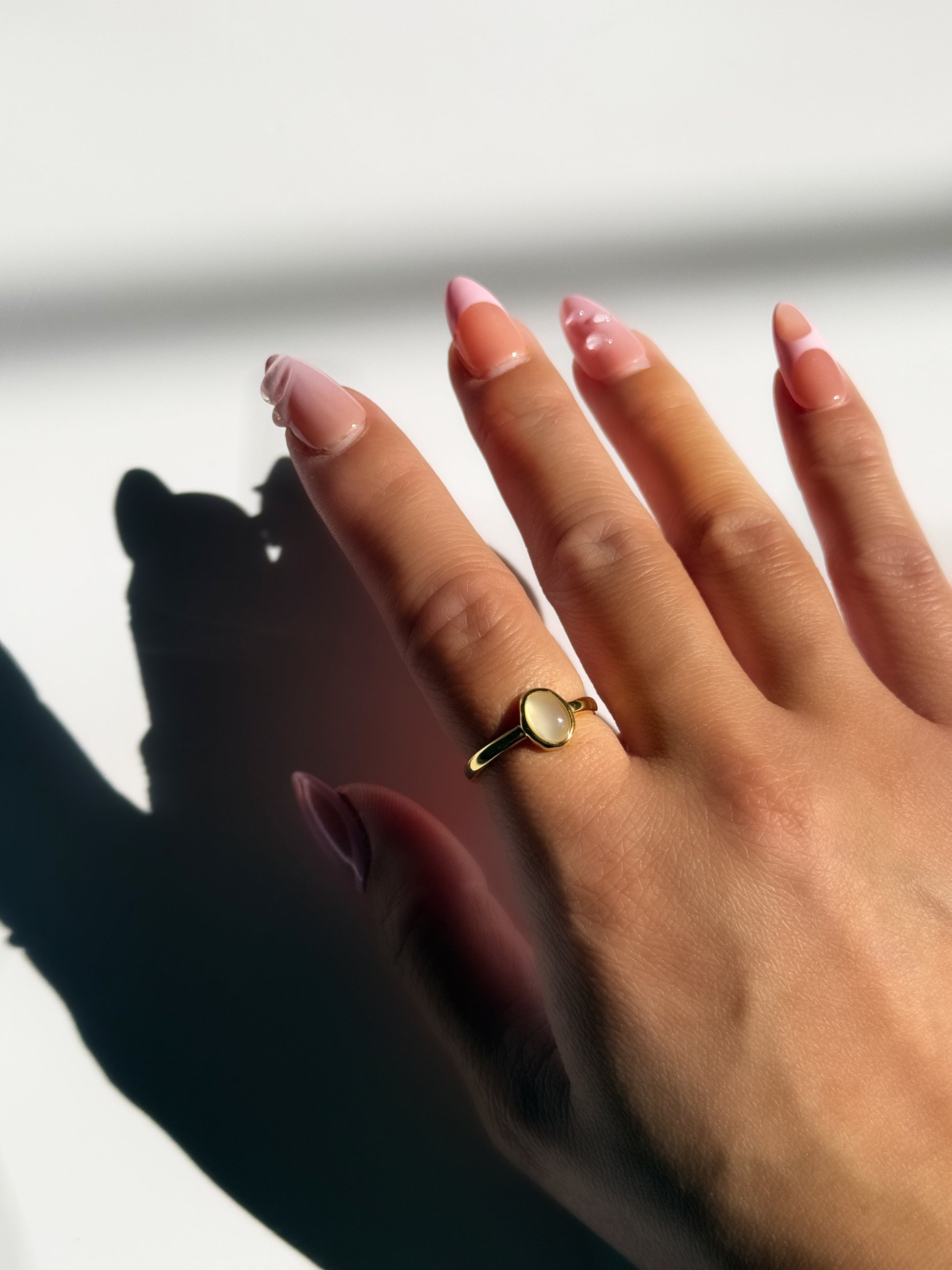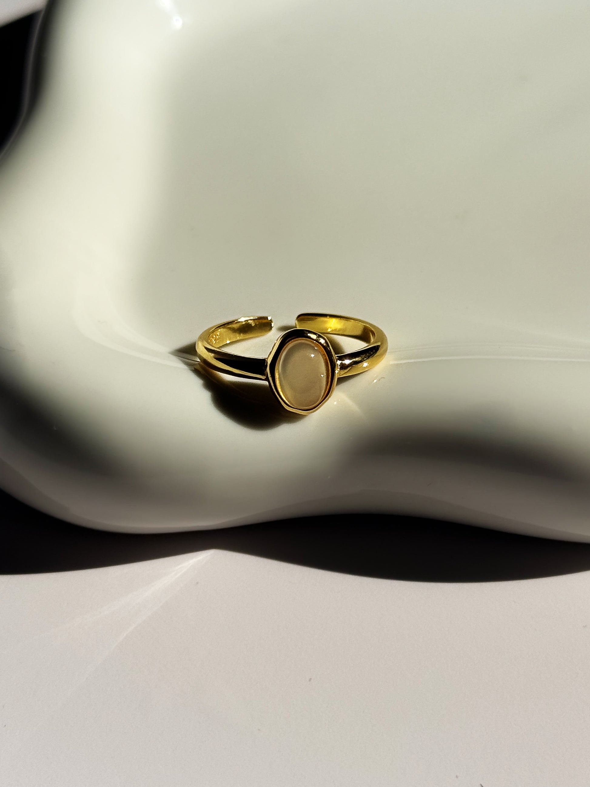 A dreamy balance of light and elegance, the Nova Ring features a captivating natural opal set in a smooth bezel atop a 14k gold-plated sterling silver band. With its adjustable design and celestial glow, this ring is made to fit most and shine with you, day or night. The opal’s soft iridescence catches the light with every movement, making it a subtle yet stunning statement piece.