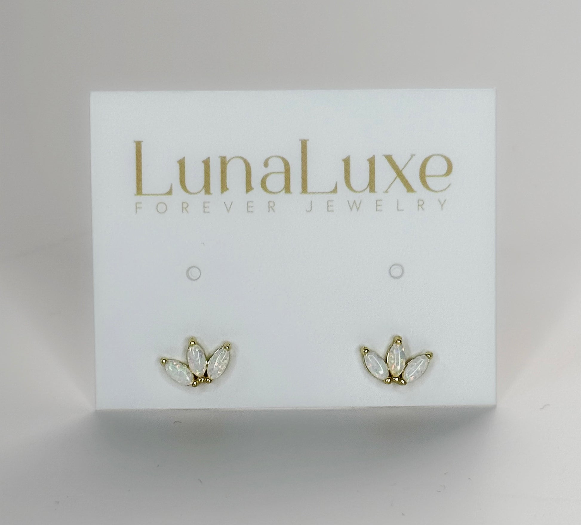 - Design: Three blooming leaf-inspired opals connected in a stud style