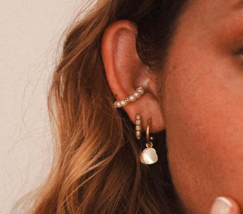 Elevate your ear stack with the timeless elegance of the Pearl Cuff. This dainty ear accessory features a seamless row of luminous freshwater pearls, delicately accented by polished gold vermeil beads. Designed to add a touch of sophistication to any look, this cuff is perfect for everyday wear or as a standout piece for special occasions. No piercing is required, making it a versatile and comfortable addition to your jewelry collection.