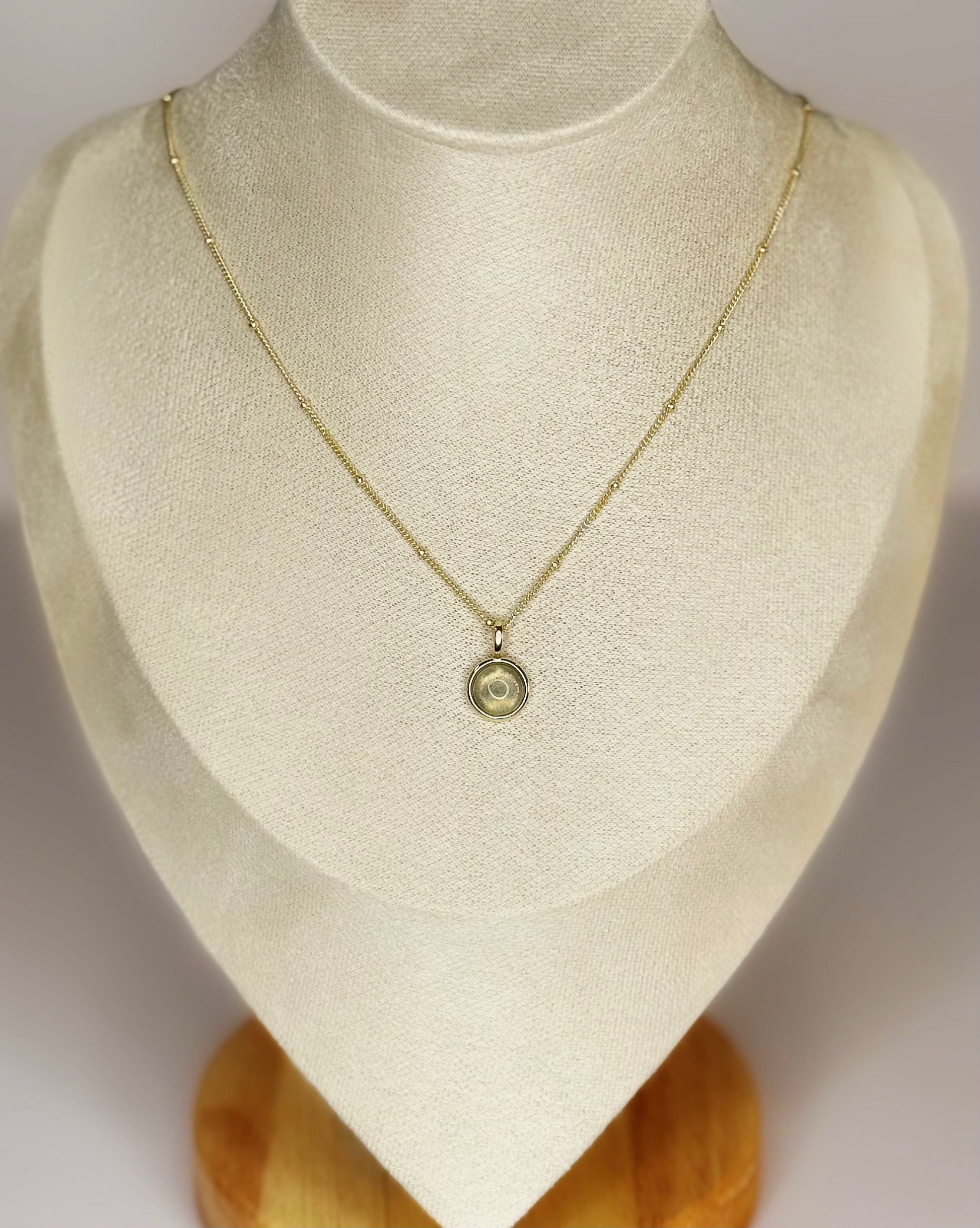 The Reflections Necklace is a stunning blend of elegance and mystique. Crafted with a sterling silver base and finished in thick gold vermeil, it features a delicate 16-inch beaded chain with a 2-inch extender for adjustable wear. The centerpiece is a natural labradorite pendant, radiating with mesmerizing iridescent hues that shift with every movement.