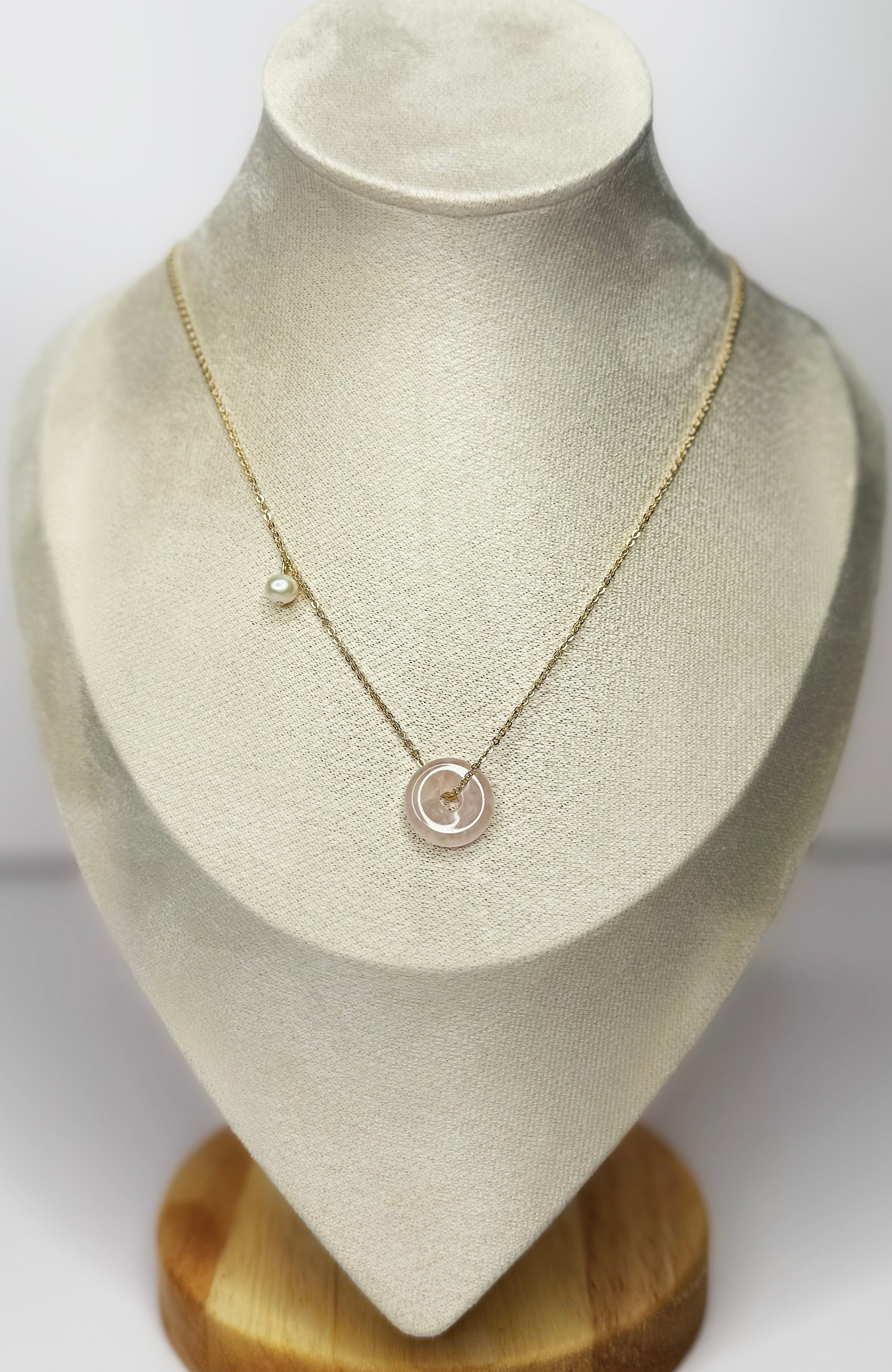 The Rose Quartz Necklace exudes gentle beauty and love. This 18k gold-plated chain is adorned with a soft natural rose quartz pendant, complemented by a dainty off-centered freshwater pearl. The light pink hues of the rose quartz create a soothing and elegant design, perfect for everyday wear or a special occasion. Adjustable from 16 to 18 inches, it ensures a comfortable and customizable fit, allowing you to wear it however you like.