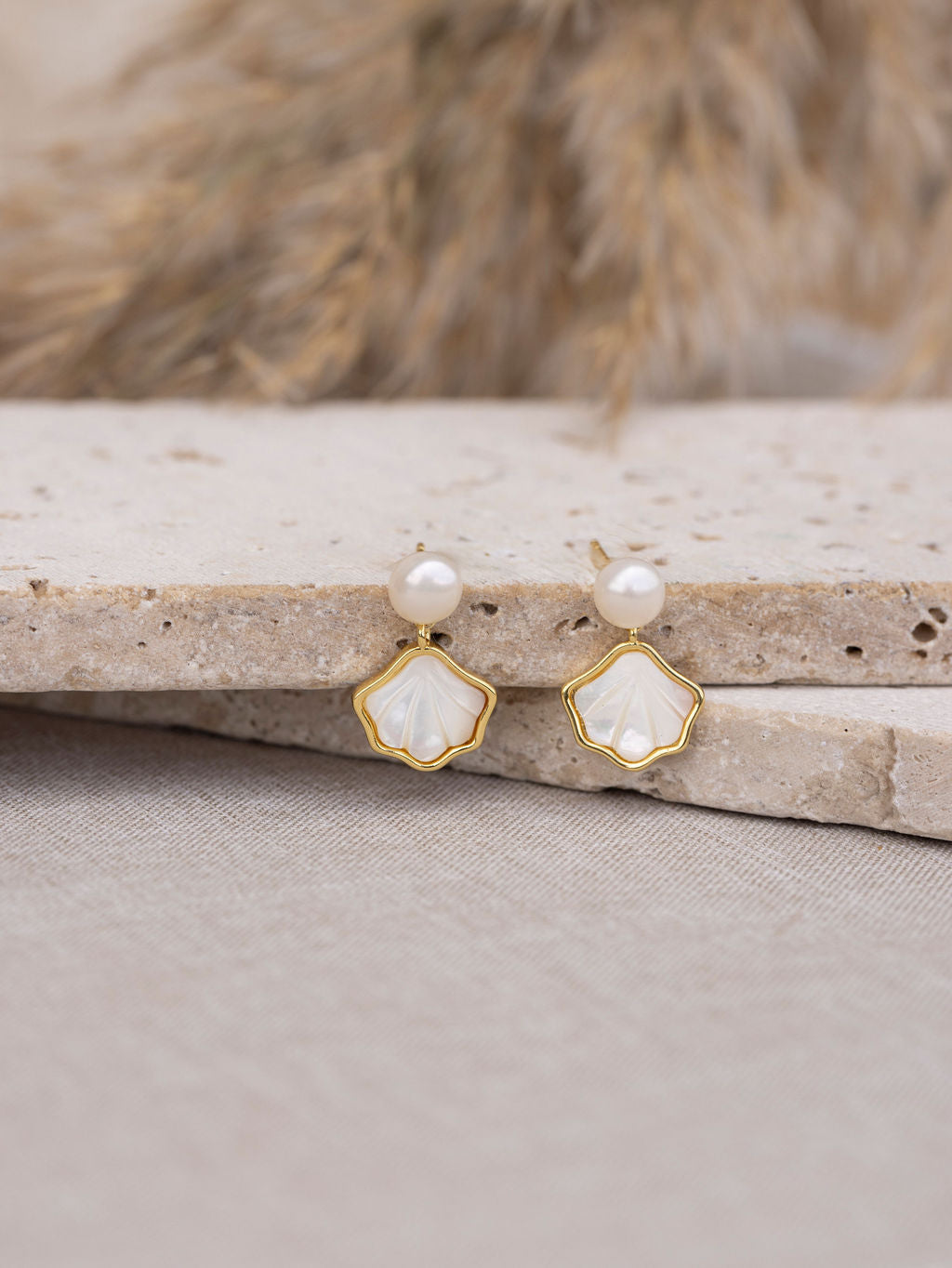 Embrace the allure of the coast with our Seaside Pearl earrings, where timeless elegance meets oceanic charm. Featuring a mother of pearl sea shell suspended from a single freshwater pearl, these earrings are designed to add a touch of seaside sophistication to any ensemble.