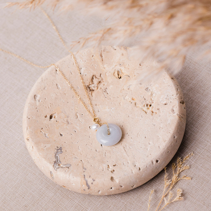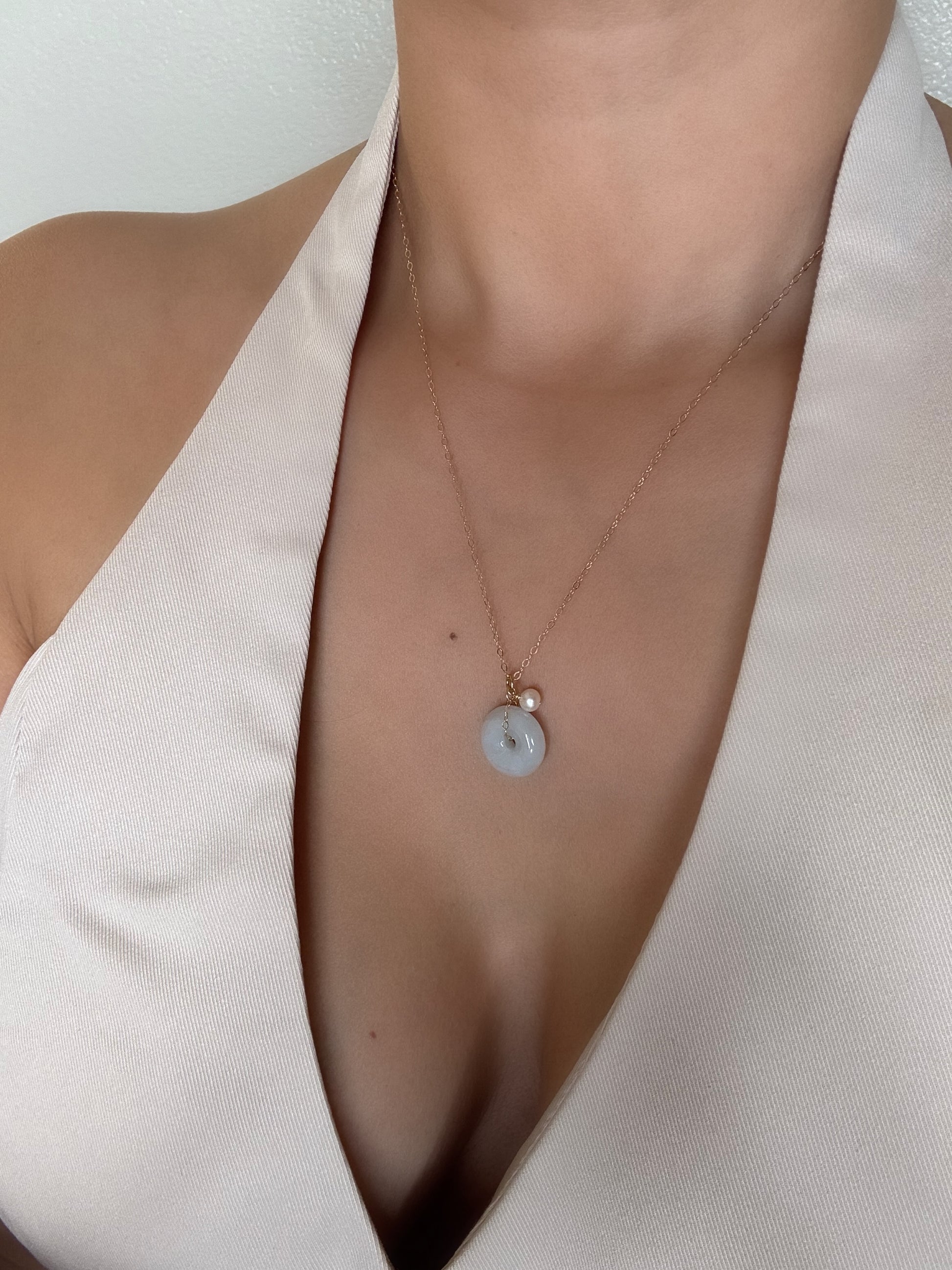 Elegant, timeless, and effortlessly refined, the Sylvie Jade Necklace is a delicate fusion of natural beauty and classic sophistication. Featuring a dainty gold-filled chain, this piece is adorned with a genuine jade coin pendant, symbolizing wisdom and harmony. A single freshwater pearl rests gracefully beside the jade, adding a soft, luminous touch to the design.