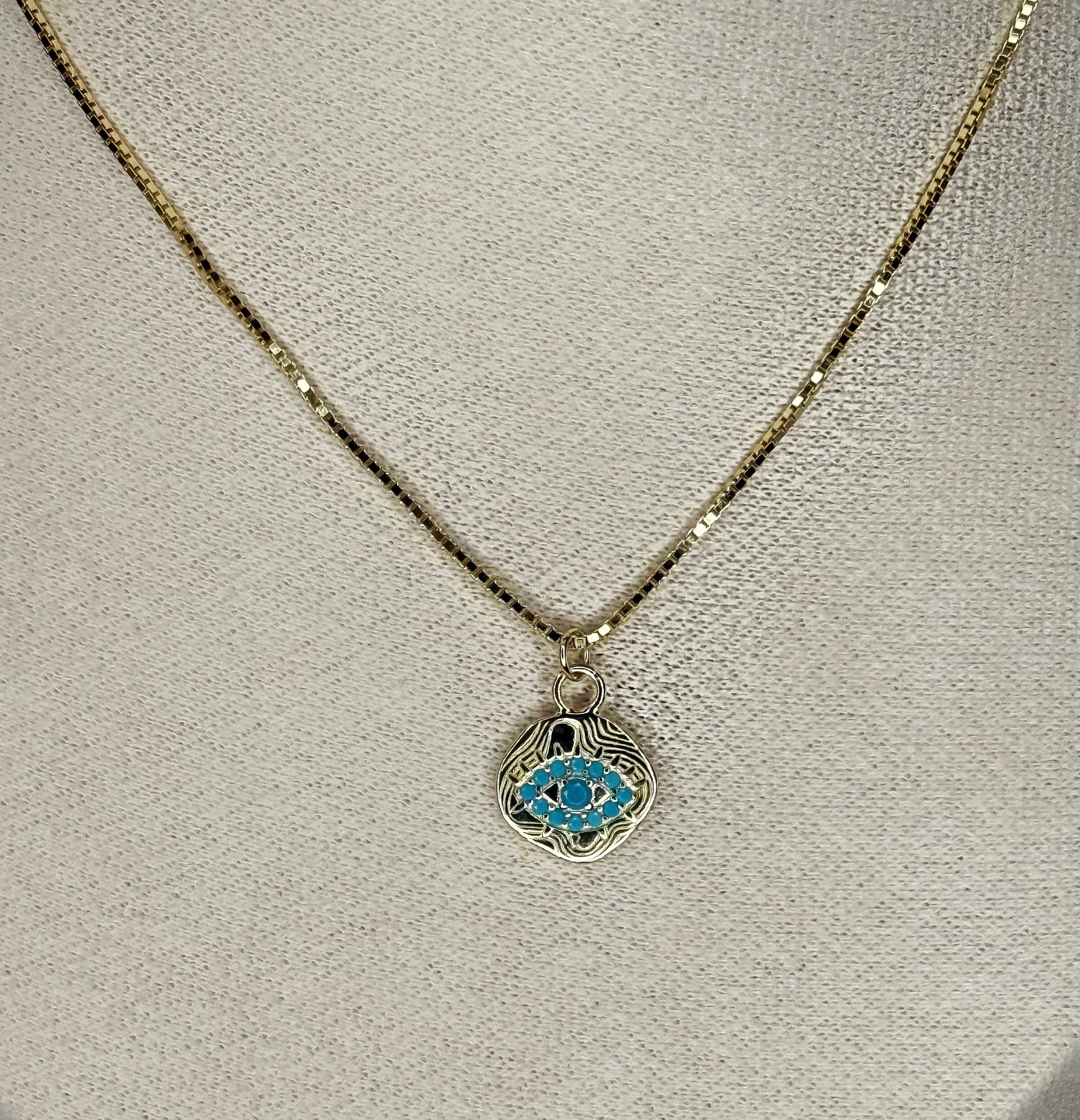 - Gemstone: Natural turquoise stone (center of evil eye)