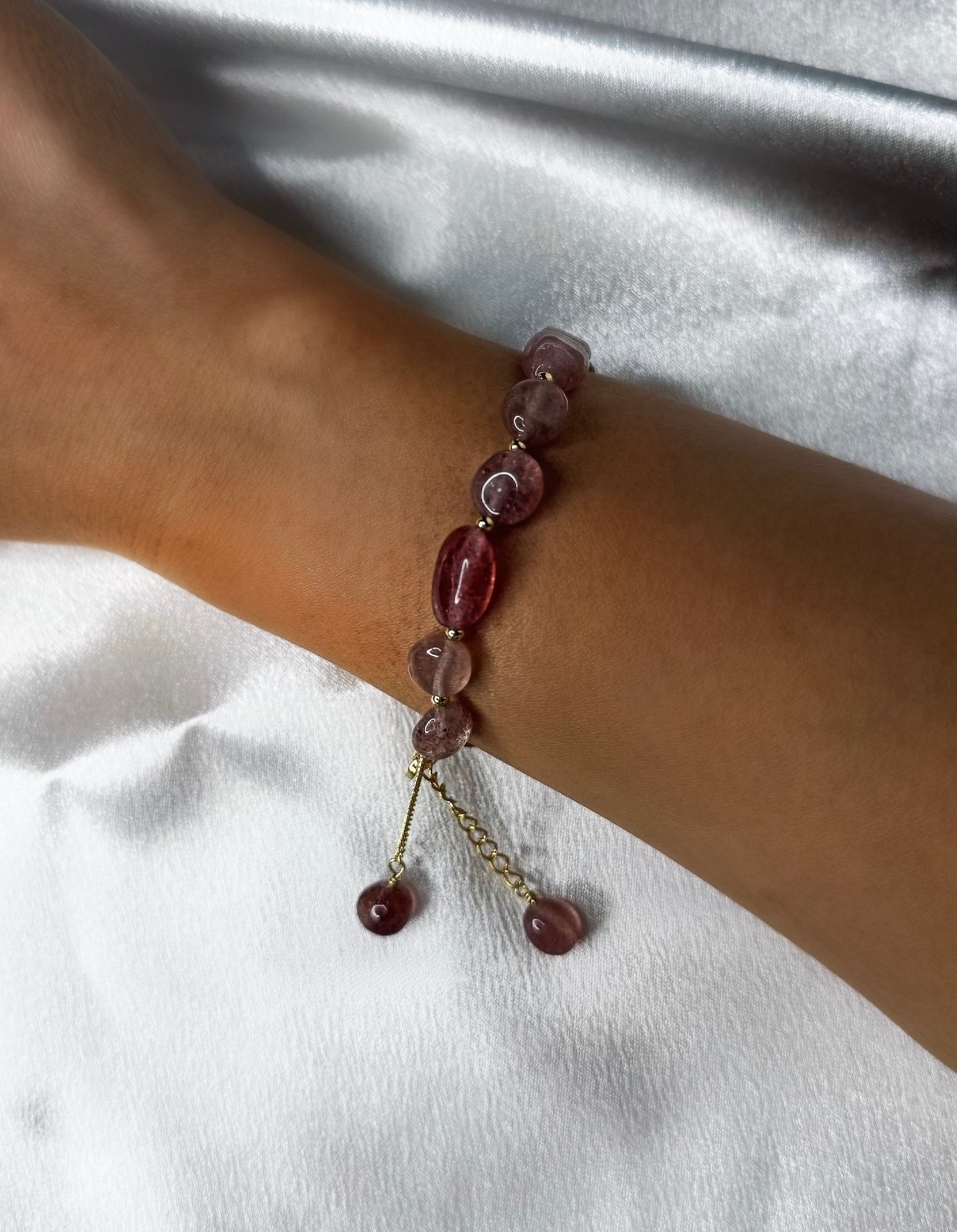 Strawberry quartz is a stone of love and positivity, known for its gentle energy that promotes inner peace and joy. It is believed to encourage self-love, compassion, and a sense of gratitude. With its warm, rosy hue, strawberry quartz brings a calming and uplifting presence to its wearer, making the Valeria Rose Bracelet not just a beautiful accessory, but also a source of emotional healing and balance.
