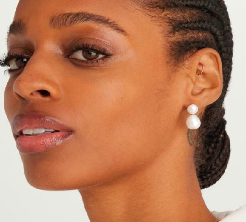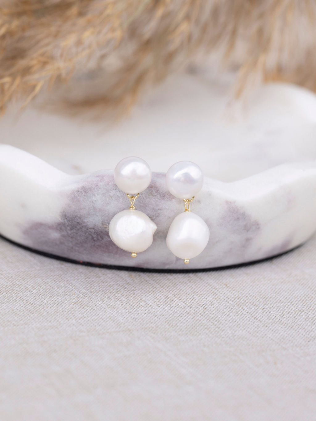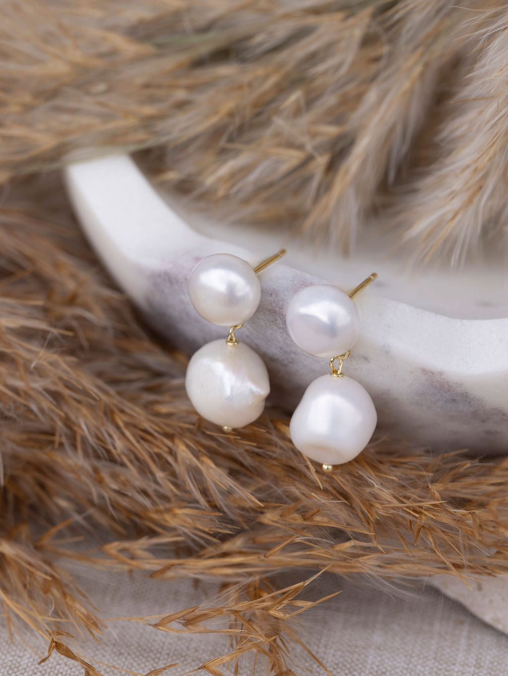 Pearls: Natural freshwater pearls (round stud + baroque drop)